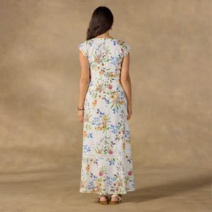 More is just enough for the Camarillo Eyelet Dress??with the freshest floral print on all-over eyelet fabric. The subtle structure of the seamed bodice flatters. while her slight flutter sleeve is a bit of a flirt. Center back zipper; fully lined. Cotton/rayon. Machine wash. Imported. Exclusive. Sizes 0?C14. Approx. 49.75l.