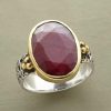 Mixed metal converges in this exquisite ring: Wrapped around a concave sterling silver band is a slender band of brass bearing a faceted moss aquamarine gemstone. Exclusive. Whole sizes 5 to 10. Approx. 3/8w.