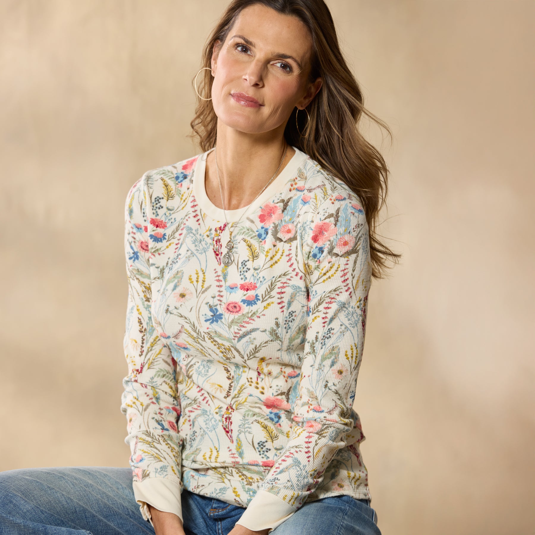 Our Sausalito is an update to a Sundance favorite—a cozy crewneck thermal in the loveliest floral print! Three-quarter sleeves with rib trim at the cuffs and neckline. Cotton/spandex. Machine wash. Imported. Exclusive. Sizes XXS (00). XS (0–2). S (4–6). M (8–10). L (12–14). XL (16–18). Approx. 23.5l.